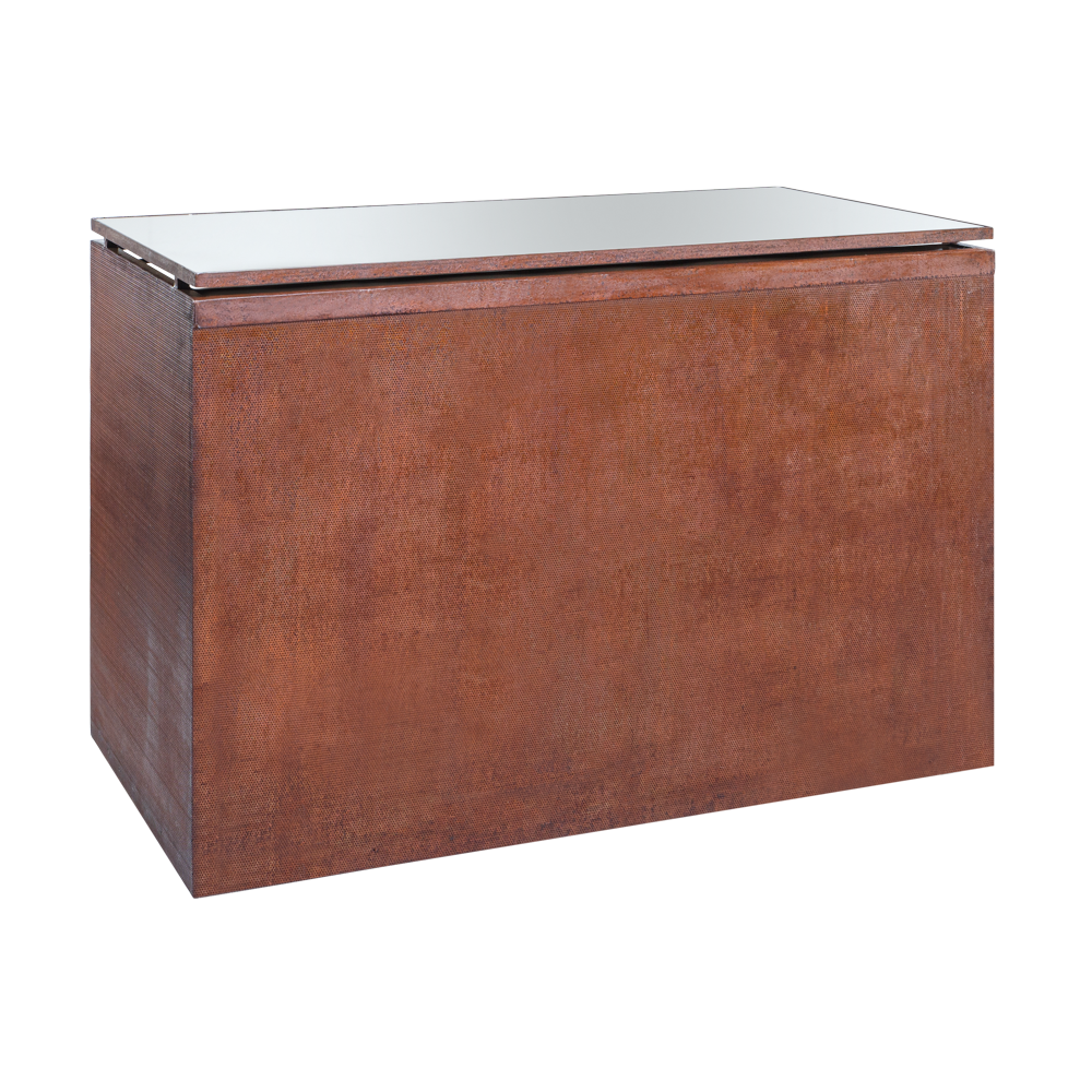 Bar modulado em ferro oxidado com tampo de espelho.