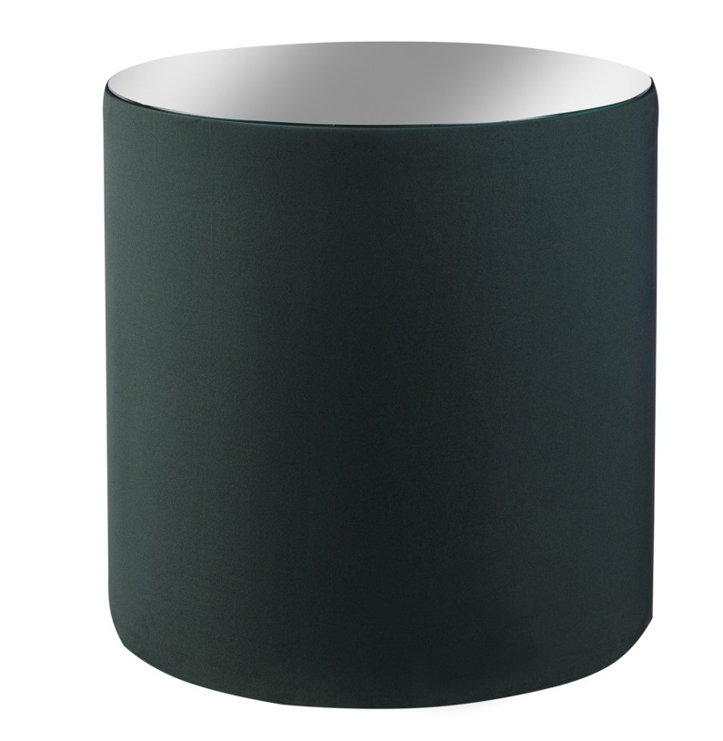 Mesa revestida de tecido, com rodinhas e tampo de espelho ou vidro - na foto verde.