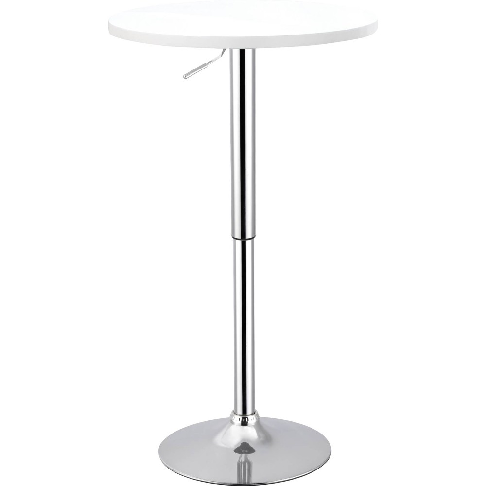 Bistrô com pés cromados e tampo branco.
