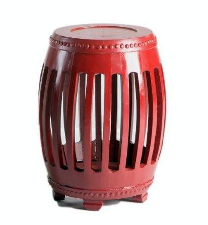 Banqueta baixa em madeira pintada bordô.