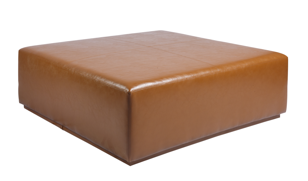 Grande pufe quadrado de couro caramelo.