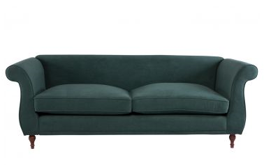 Sofá estilo clássico de veludo verde. Na imagem abaixo, com almofadas - já inclusas